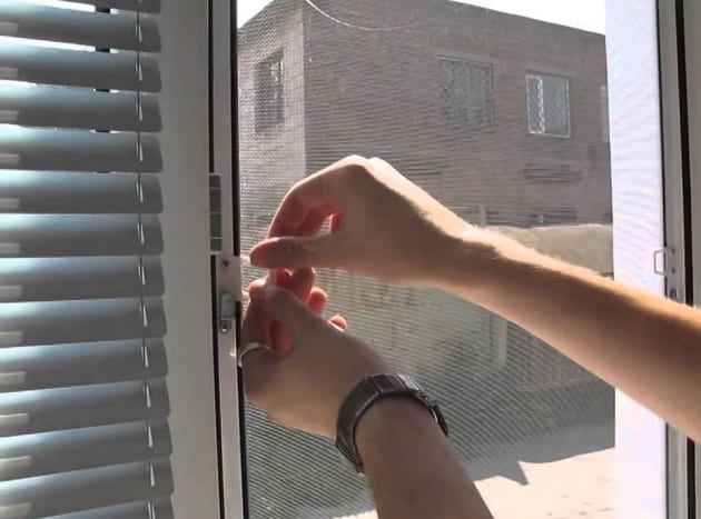 Устанавливается на дополнительные полозья, по которым её можно переместить на любую часть рамы, сама сетка на роликах, по периметру самой сетки вставляется фетр, чтобы даже между створкой и сеткой не пролетели насекомые.